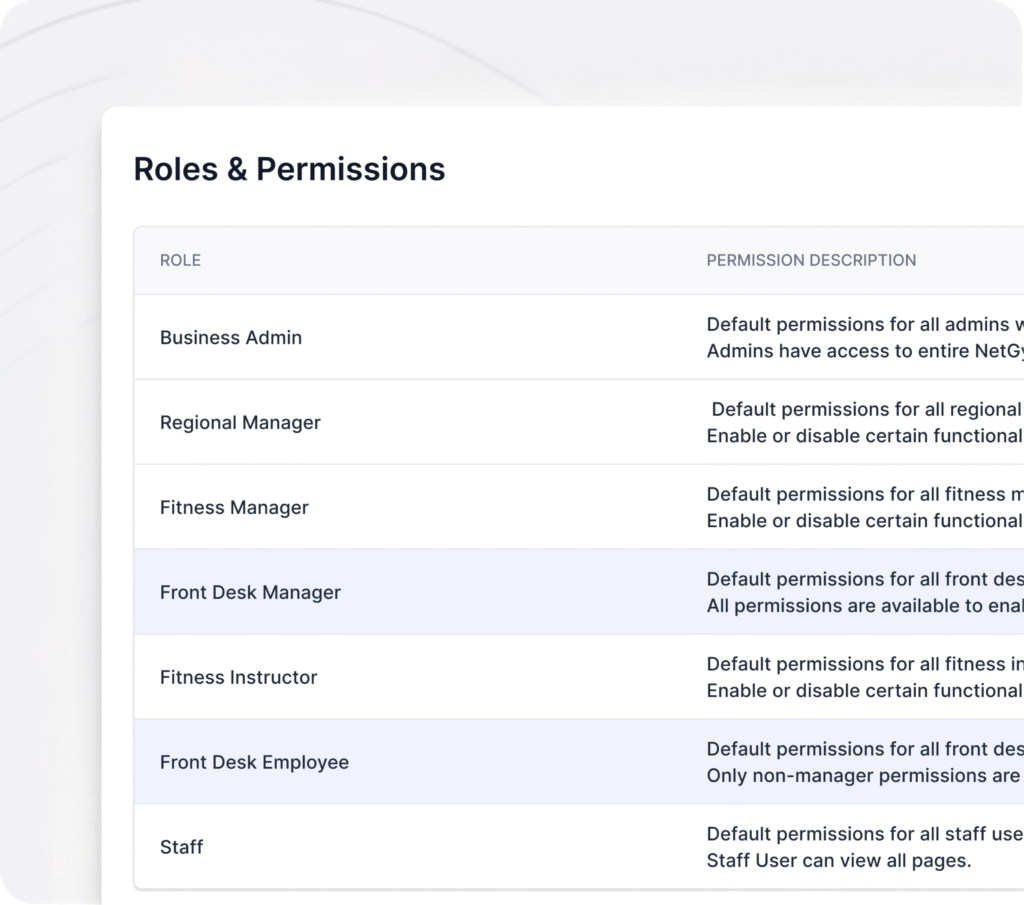 The same NetGym tools that helped you manage instructor communication, docs, and resources now extend to your front desk and admin staff.