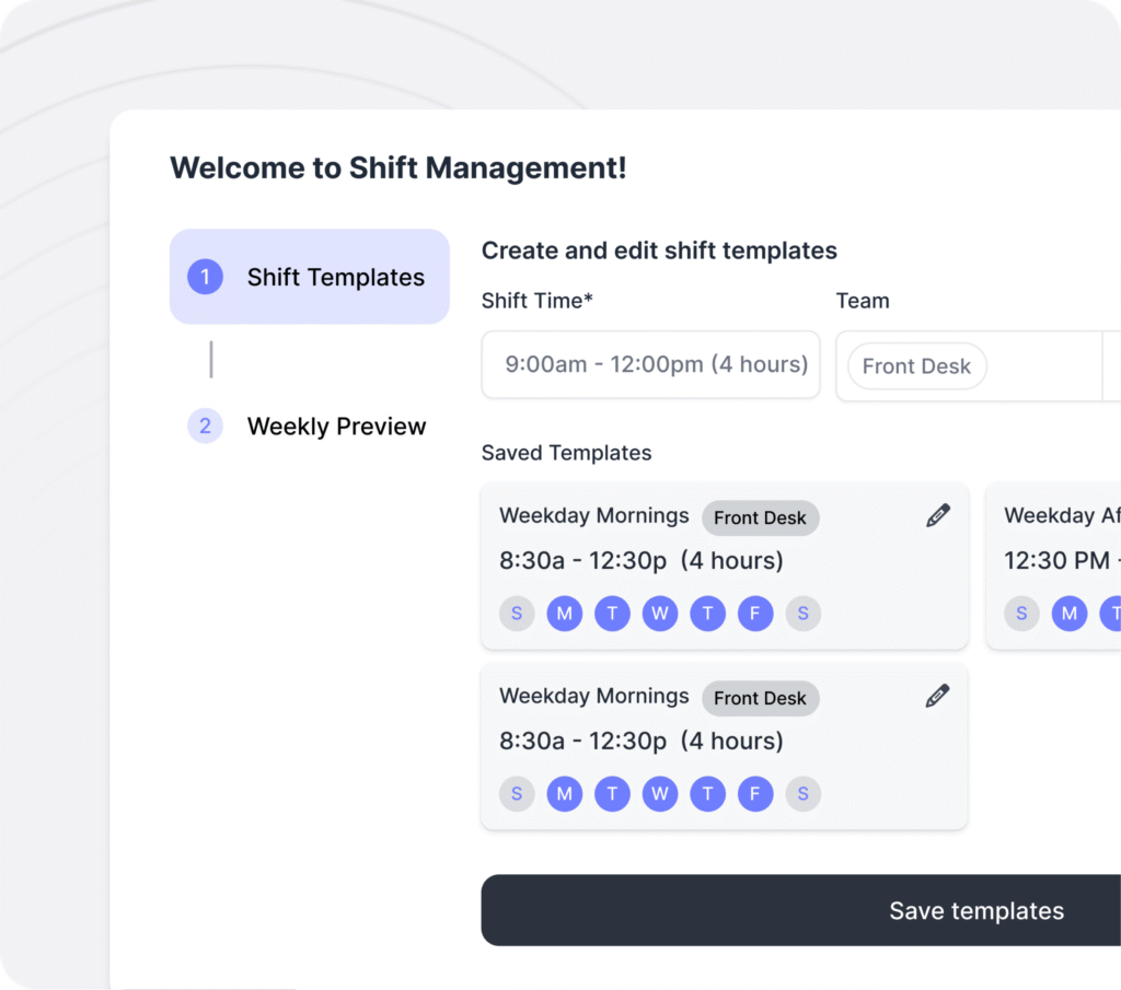 Recurring shifts, templates, and draft/publish tools save managers time every week.